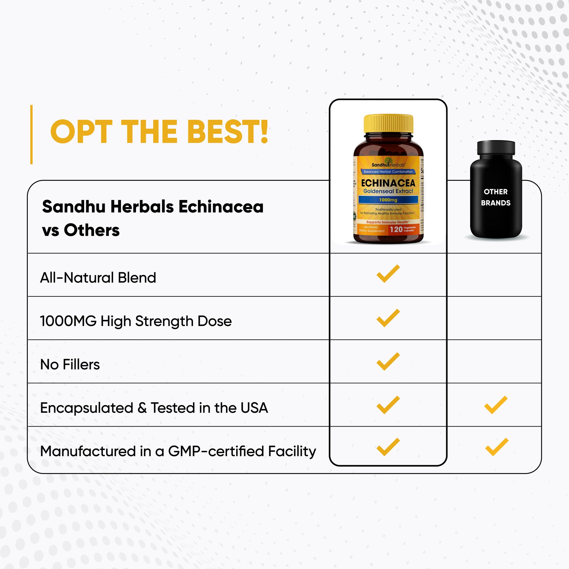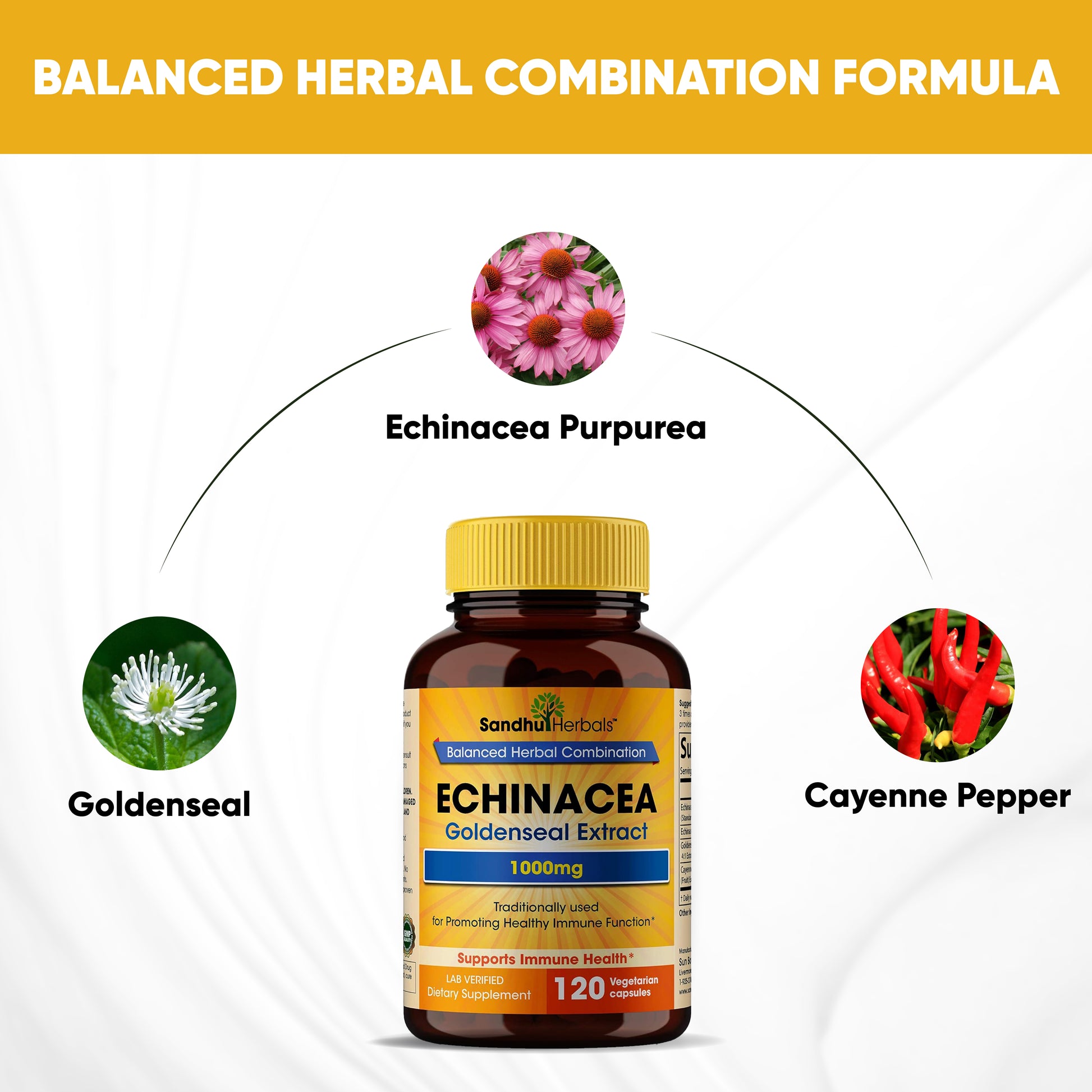 You can experience the benefits of potent traditional herbs like echinacea and goldenseal, combined with the power of cayenne capsicum, with Sandhu Herbals Echinacea Blend.* Each capsule of Sandhu Herbals Echinacea Blend delivers 1000mg, helping to restore your optimal wellness naturally.*
