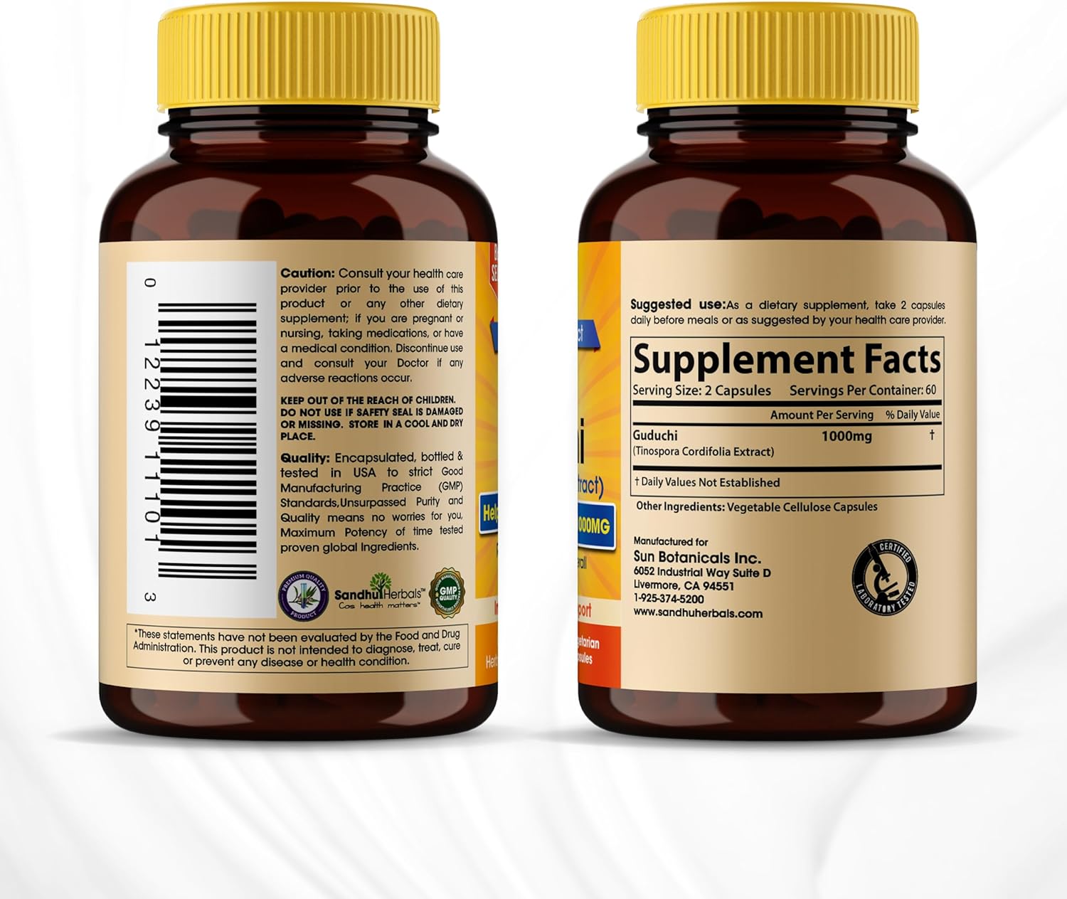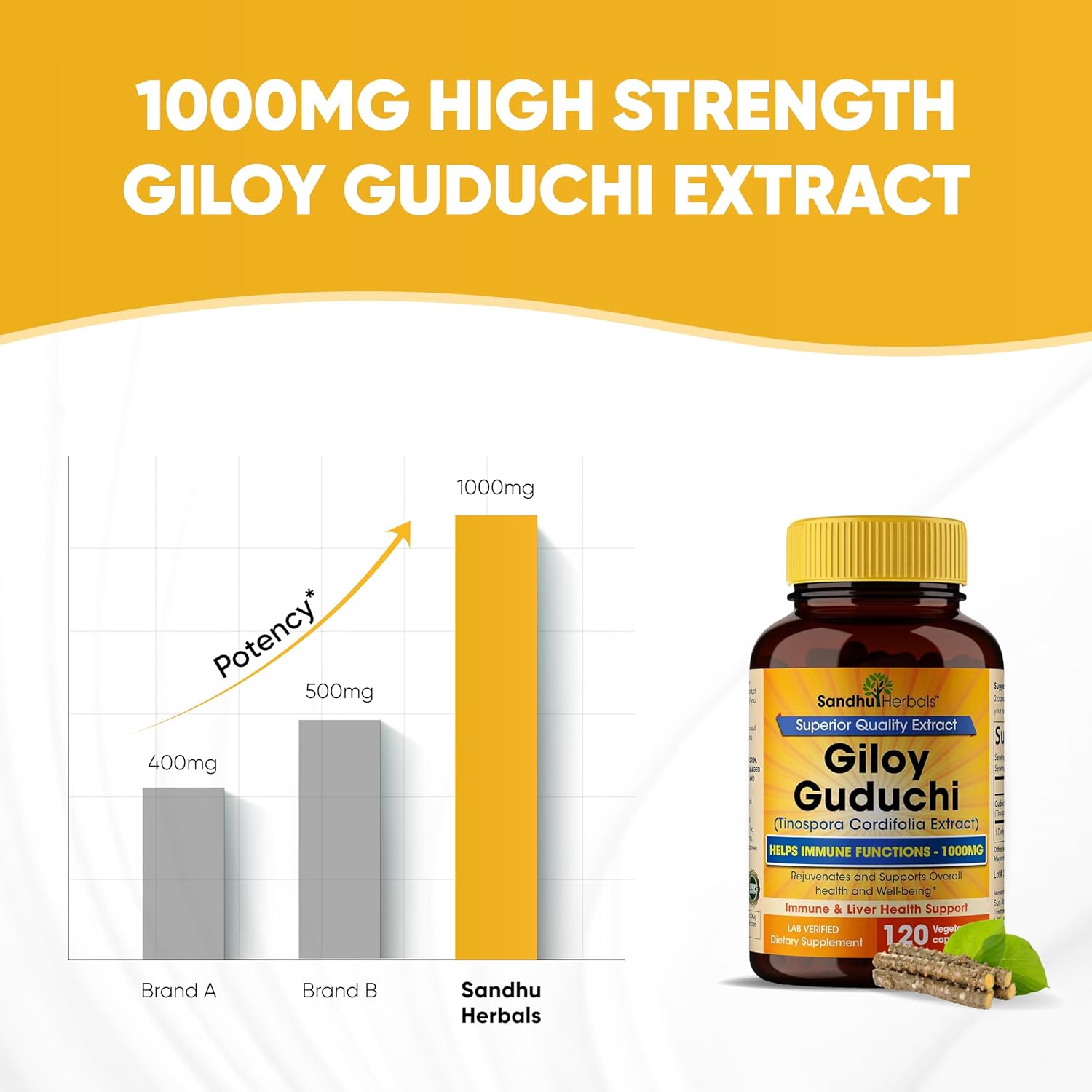 - Natural Energy: Feeling drained? Sandhu Herbals Giloy Guduchi, as an adaptogen, helps your body adapt to stress and ease tiredness.* It supports your natural energy level, leaving you feeling more revitalized throughout the day.*