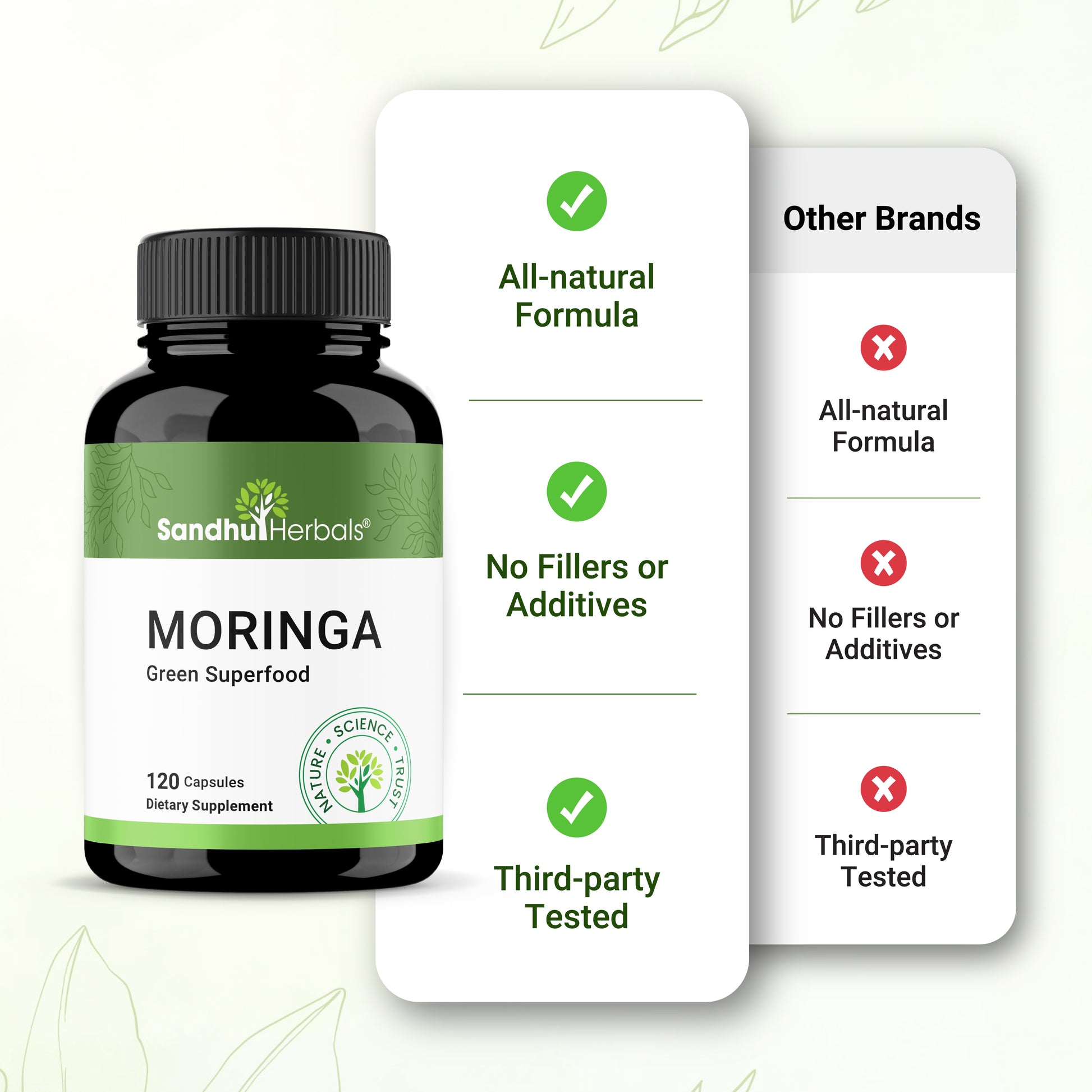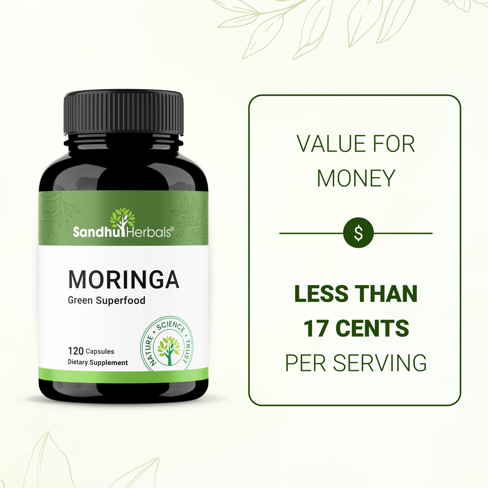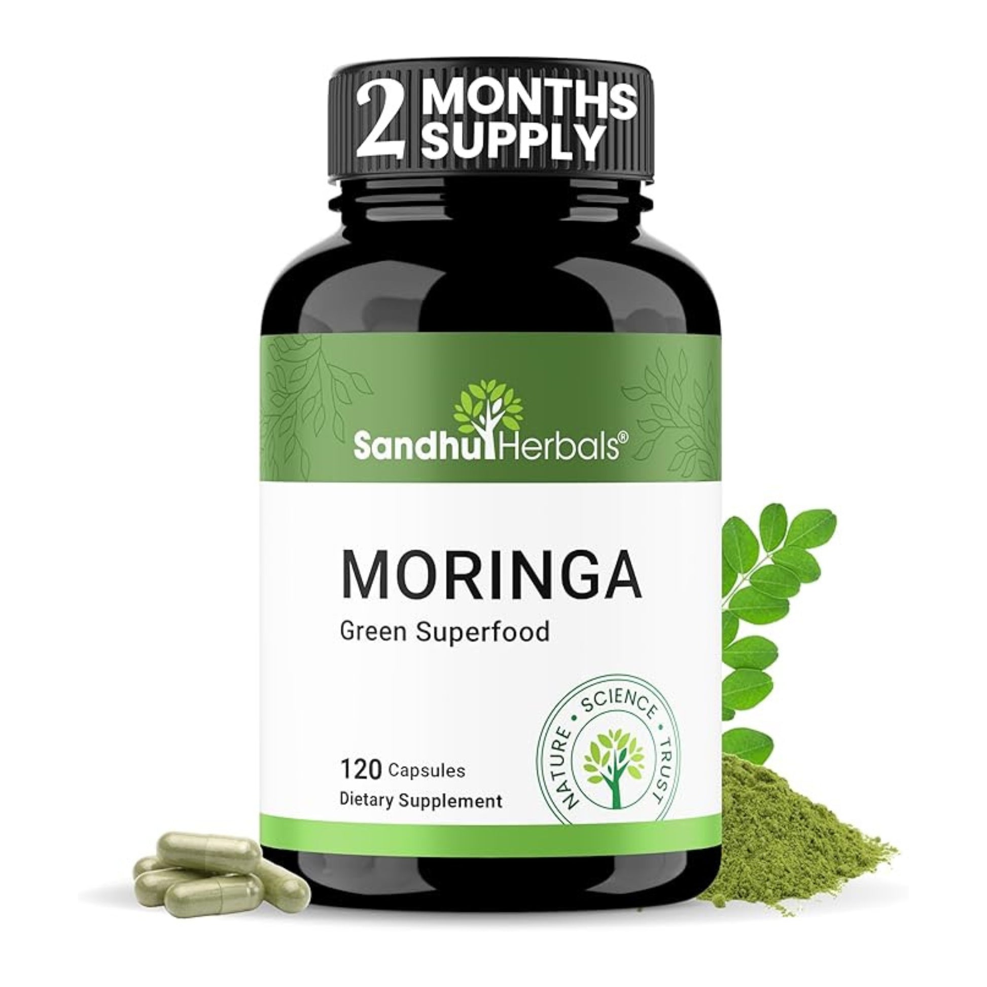 Moringa, also known as “The Miracle Tree,” is a powerhouse of essential nutrients, antioxidants, and plant compounds that have been traditionally used for centuries to support overall well-being.* Sandhu’s Moringa Capsules provide a high-potency, 900 mg serving of pure Moringa leaf powder to help nourish your body from within.*