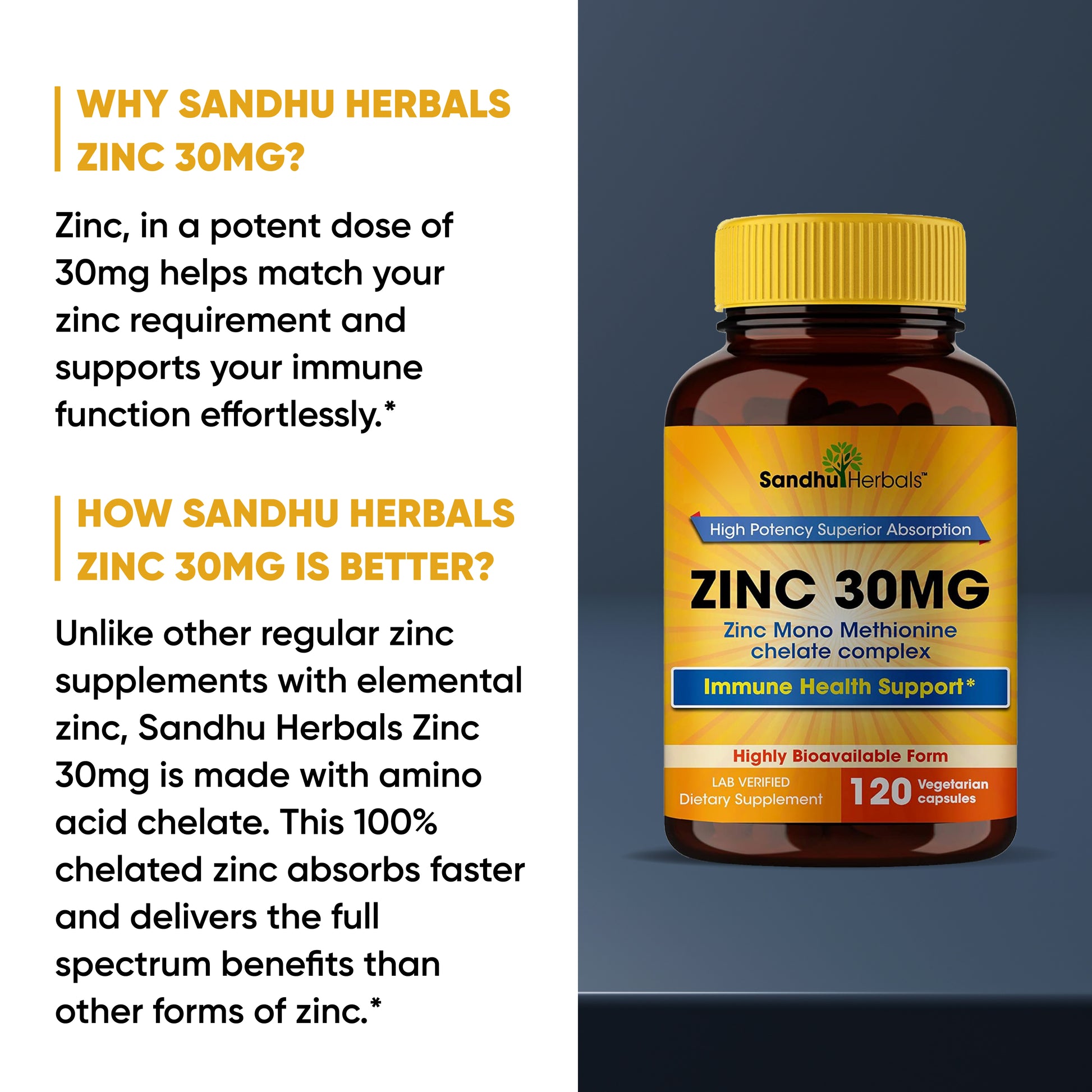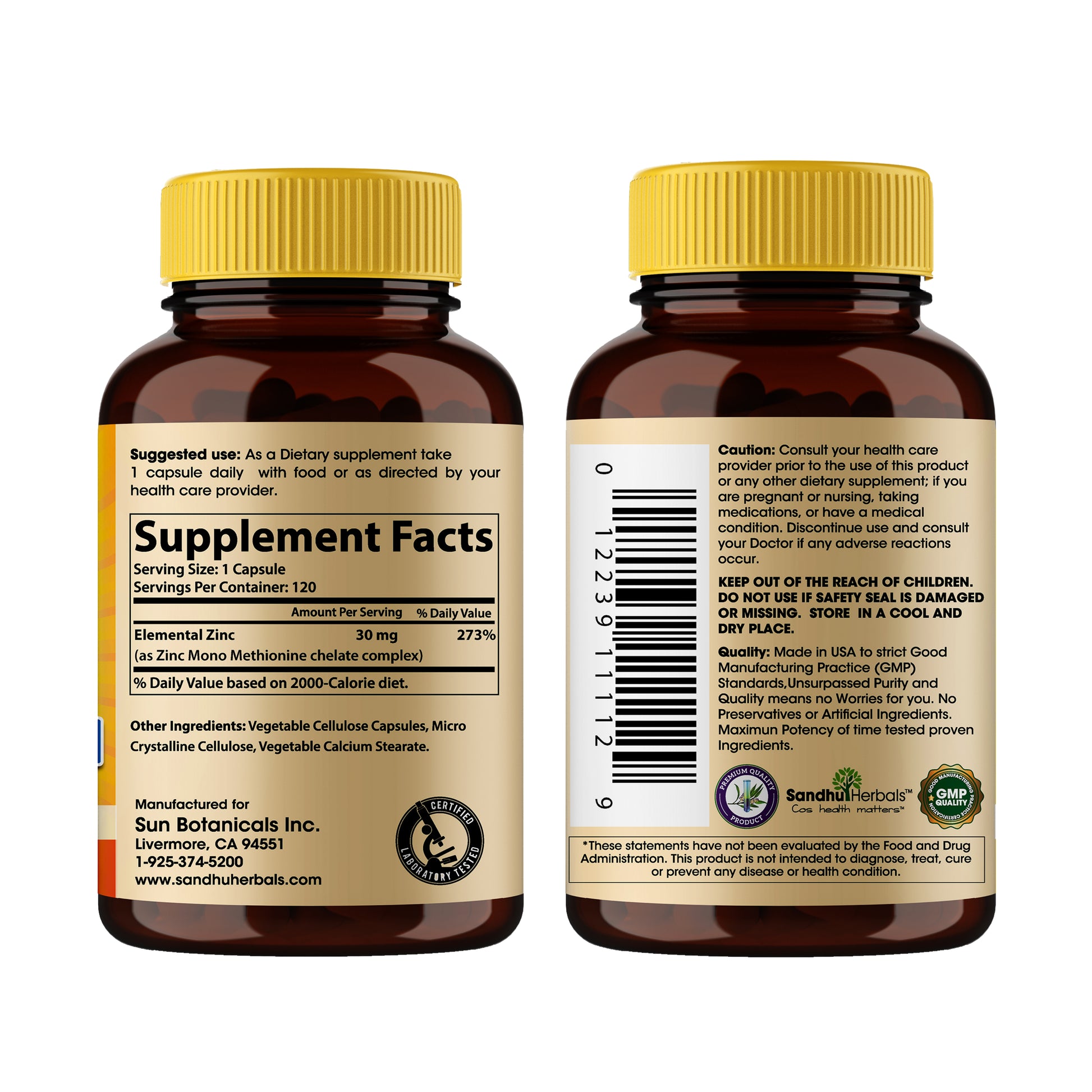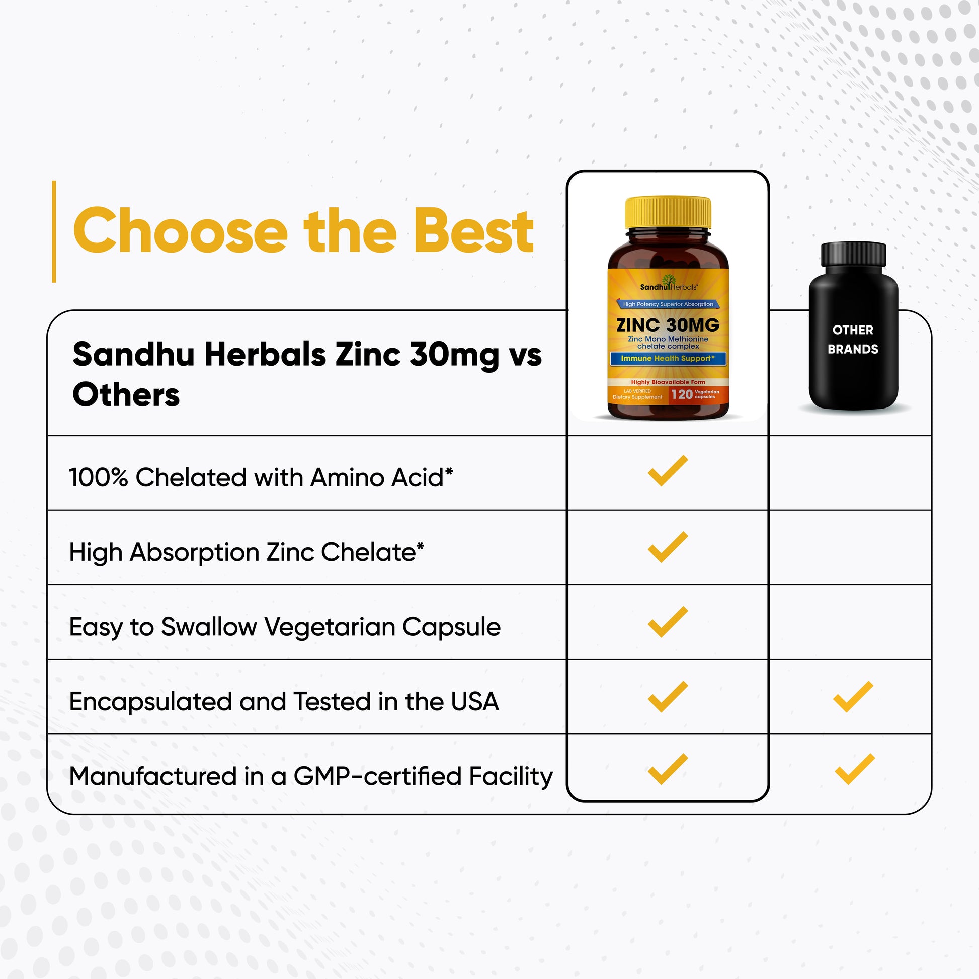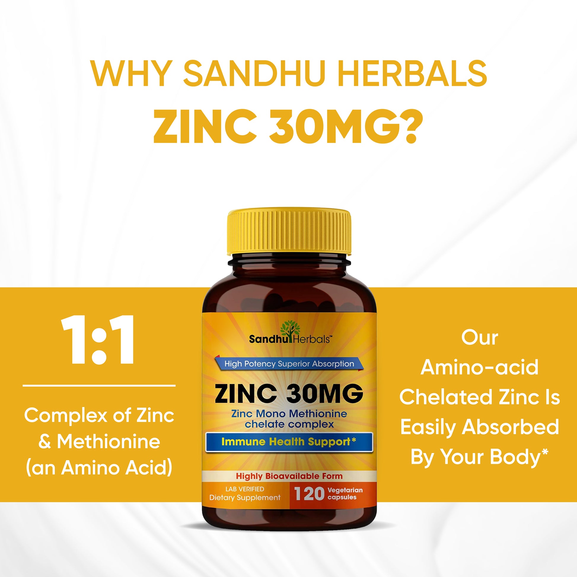At Sandhu Herbals we formulated using ‘zinc mono methionine chelate’, a 1:1 complex of zinc and methionine, an amino acid that is well absorbed by the body. Chelated zinc offers superior absorption, antioxidant and immune health benefits when compared to other forms of zinc*